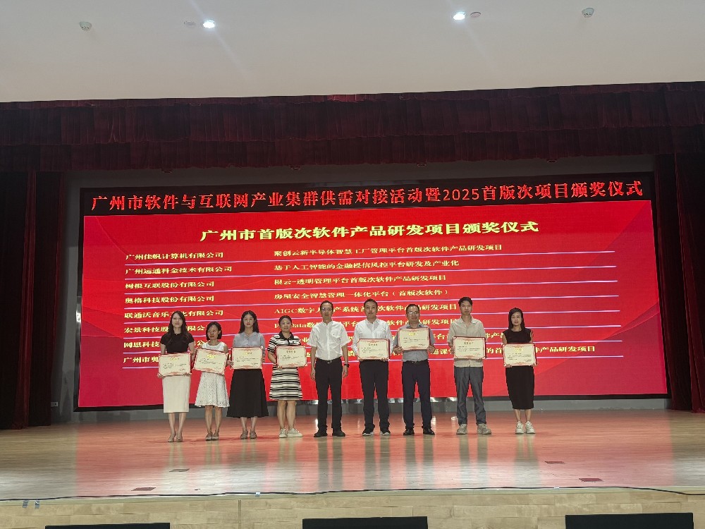 8月22日,网思科技自主研发的“赋能企业数智化转型的网思AI视频分析平台”凭借其突出的技术创新优势和显著的应用成效,荣获2025年广州市首版次软件产品认定。这一殊荣不仅是对网思科技技术创新能力的高度认可,更是对网思科技多年来坚持自主研发、深耕数智化领域的有力见证。图为网思科技代表(右二)上台领奖广州市工业和信